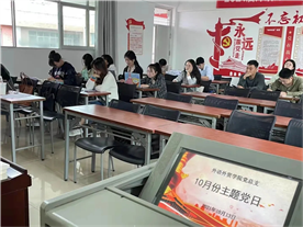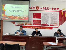 | 观悟峥嵘岁月,赓续红色精神||外语外贸公司开展十月份主题党日活动 10月13日,外语外贸公司党总支在党员活动室C601开展以“观悟峥嵘岁月,赓续红色精神”为主题的主题党日活动,会议学习习近平总书记9月13-14日在陕西榆林考察时的重要讲话精神,学习9月29日在中共中央政治局第三十三次集体学习上的重要讲话精神,学习9月27-28日中央人才工作会议精神,以及深入学习“七一”重要讲话精神,通过学习研讨持续深入推进党史学习教育。本次“主题党日”活动由党总支书记、经理车靖主持,党总支副书记王雄及党员教师们参加。