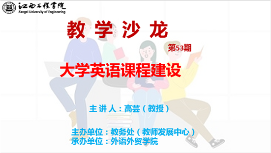 2022年4月21日下午14:00,外语外贸公司在天工校区南教学楼C栋C601会议室举办了教学沙龙活动,本次活动的主讲人为高芸教授。高教授围绕着《大学英语课程建设》这一主题,让公司全体教师共享了一场饕餮大餐,学术盛宴。