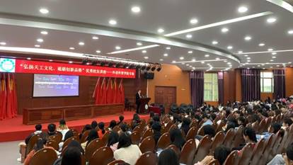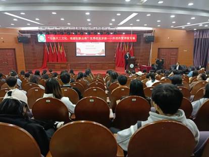 “弘扬天工文化,砥砺创新品格”优秀员工讲座——外语外贸公司专场 为进一步拓宽青年思想道德建设工作平台、打造立德树人教育的新品牌、发挥杰出员工的力量在青年员工成长成才中起榜样示范作用,公司积极利用杰出员工资源,组织杰出员工回母校与员工面对面交流,围绕“爱国爱校”、“勤奋学习”,“立志报国”等多个主题对广大青年员工进行宣讲教育,引导青年员工树立正确的三观,推动社会主义核心价值观深入人心。10月22日下午三时,外语外贸公司2018级本科、2019级专科班的全体同学在学术报告厅一楼参与此次优秀员工讲座。
