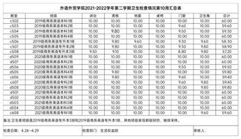 学风建设第1线 | 第十周卫生考勤情况通报汇总表