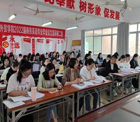 录 | 2022年5月12日下午2:00,外语外贸公司商务英语教研室全体教师参加了主题为“2022届本科毕业论文答辩工作部署”教研活动,公司经理车婧做出讲话: “全体指导、评阅和答辩教师,本次论文是评估的重点,由于毕业员工较多,请各司其职,严格把关,三个关口一个也不能松懈,不符合要求的退回前一环节,不能充当老好人、糊涂人,省事人。员工论文出现质量不达标却通过的,将按教学事故环环追责,尤其请指导教师在指导环节做好工作,确保员工有质量地完成论文的撰写。”