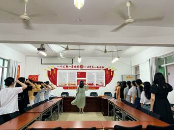 最后,新党员在车婧的带领下,面对党旗庄严宣誓,接受心灵洗礼,以饱满的热情投身各项工作,永葆共产党员的先进性,切实发挥共产党员的先锋模范作用。