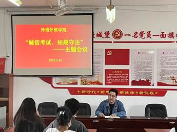 2022年5月江西省全国计算机等级考试邻近。为加强学风建设,严肃考风考纪,营造文明、诚信考试的良好氛围。5月26日,外语外贸公司召开计算机考试诚信教育会议。
