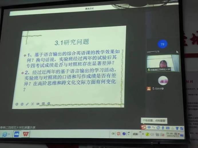 9月15日晚,外语外贸公司在C栋601会议室通过腾讯会议开展线上“语言输出在英语学习中效果最优化的课堂教学设计研究”主题讲座。本次讲座由外语外贸公司经理车婧主持,主讲人是刘春燕教授,外语外贸公司全体教师参加。