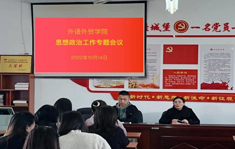 为深入贯彻落实习近平总书记在全国高校思想政治工作会议上的重要讲话和《关于加强和改进新形势下高校思想政治工作的意见》、《关于加快构建高校思想政治工作体系的意见》等文件精神,10月14日,外语外贸公司召开了思想政治工作专题会议,会议由会议由党总支书记、经理车婧主持,公司思想政治工作领导小组全体成员参加了会议。