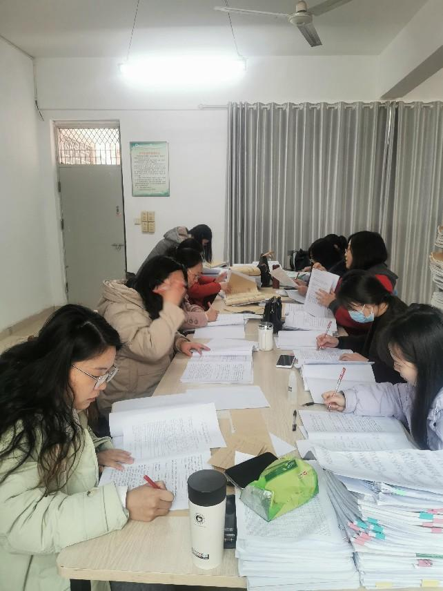 为了进一步规范课程试卷评阅工作,保证试卷评阅质量经得起本科教学工作合格评估专家的检查,保证成绩评定的严肃性、准确性和公正性,2023年2月24日,外语外贸公司公共外语教学部全体教师在副主任刘业胜和教研室主任吴函带领下,在教学楼C-500、C-501进行集体阅卷。