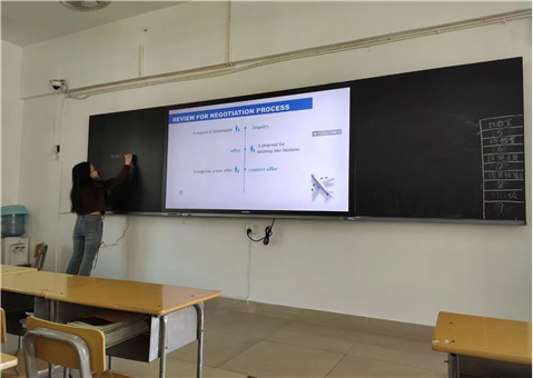 陈慧云老师讲授《高级英语》课程细致入微,带领大家对教材课文进行精读学习,在课文有一定难度的情况下,精细拆分段落讲解,其流利的口语表达获得一致好评。易威伟在《商务翻译》课程上将翻译理论与翻译实践高度结合,将严复信达雅的翻译理论,尤金·奈达的功能对等翻译理论等应用到产品说明书的实际翻译中,呈现了一堂有深度的课。艾敏锋老师讲授《国际营销概论》,他以经典电影的谈判场景片段作为课堂导入,通过新颖的教学方式调动课堂氛围,实现了良好的教学预期效果。王珊珊老师在《综合商务英语》课程上详细讲解了英语文章的翻译,注重翻译技巧和词汇知识的拓展,为常规的英语阅读课增添了新意。