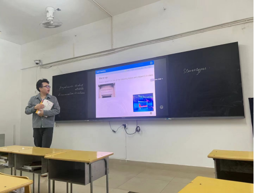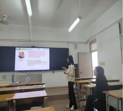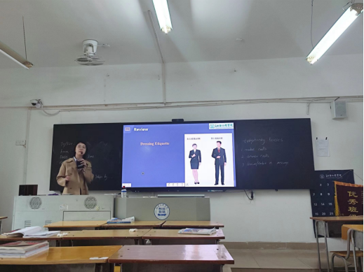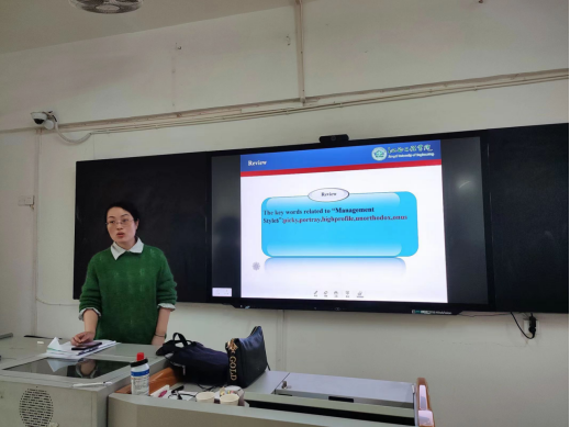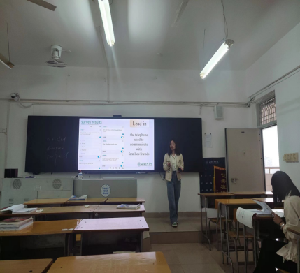 王珊珊老师和杨丽姜在进行《综合商务英语》课程的讲授,台风从容,精神状态饱满,教学仪态优雅规范,思路清晰,镇定从容,教学步骤娓娓道来,声情并茂地向在场老师展示自己扎实的基本功和课堂驾驭能力,得到教师的一致好评。