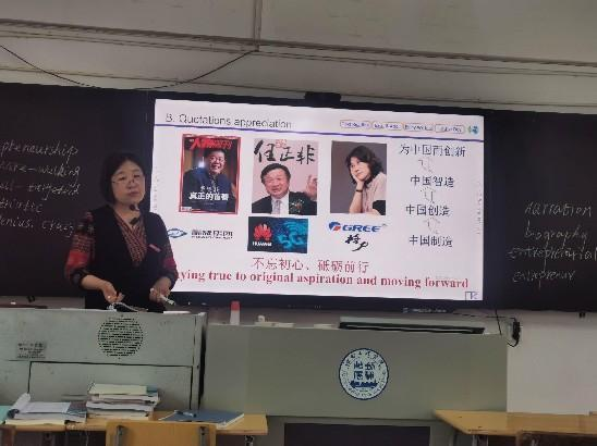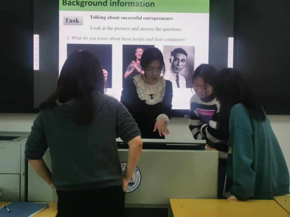 刘景瑜老师就大学英语IV所授单元Unit3 Being entrepreneurial进行磨课,她以课程思政为指导,引导员工树立正确的人生观、价值观,成功观。在Detailed reading讲解中,刘老师结合英语传记类写作要素与步骤,激发员工的学习主动性,帮助员工打下良好的写作基础,为四六级考试做准备。她流利的口语和巧妙的教学设计深得大家的一致好评。