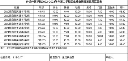 学风建设第1线 | 第5周卫生考勤情况通报汇总表