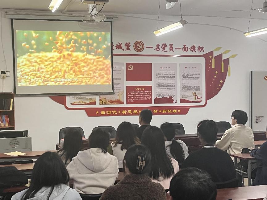 民为国基,谷为民命。当前,我国以占世界9%的耕地、6%的淡水资源,养育了世界近20%的人口,取得了举世瞩目的成就。为了贯彻落实习近平总书记重要指示精神和省委省政府部署要求,弘扬中华民族勤俭节约的传统美德,在全院营造浪费可耻节约为荣的氛围,并养成良好的进餐礼仪,外语外贸公司于3月23日晚在C601会议室组织员工收看《制止餐饮浪费,青年在行动》专题教育片,此次活动由王雄副书记主持。