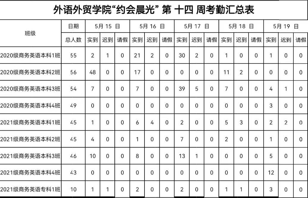 学风建设第1线|第14周卫生考勤情况通报汇总表