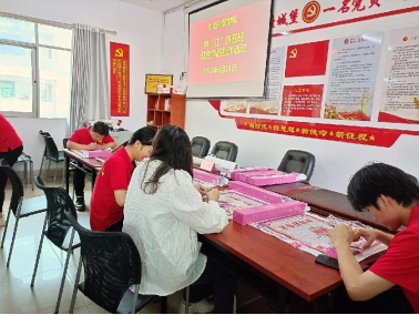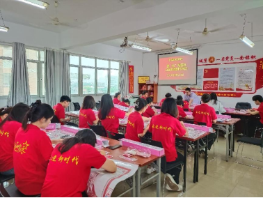 为传承红色基因,弘扬革命精神,培养员工健康、积极向上的学习兴趣,把红色文化引进校园、走进课堂、进入员工的心灵,用红色文化引领员工健康成长,6月23日,外语外贸公司红色班级在C栋601会议室开展红色作品制作活动。