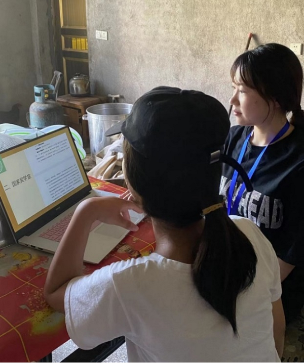 为了能够让国家的资助政策走进那些真正需要帮助的家庭中,我选择去我的家乡——湖村乡进行入户宣传。在走访之前,我首先找到了村干部说明来意,村干部表示很支持这项活动。经过一番沟通后,获知有一户家庭家中有今年考上大学的准老员工,但打电话询问后得知由于各种原因,他在外地打暑假工没能赶回来,之后在村干部的帮助下找到了一名正在读高二的女孩。