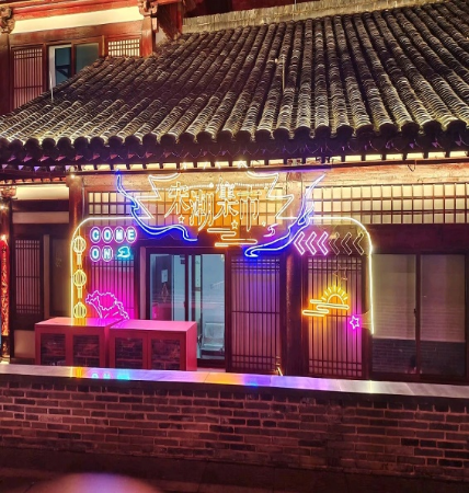 第3️站 宋街。宋街上空布置满了宋词名句,晚上亮灯后会更有意境。是拍照打卡的绝佳之地!