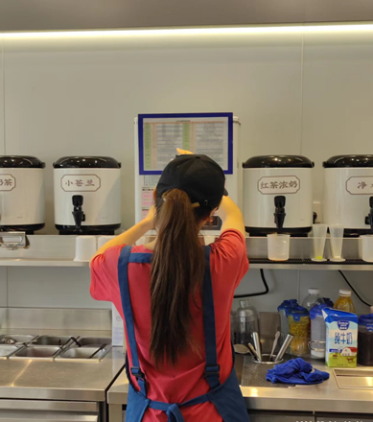 今年暑期我在奶茶店做兼职,主要负责后厨,雪克以及和顾客沟通他们需要什么产品,和他们介绍奶茶,去服务顾客。