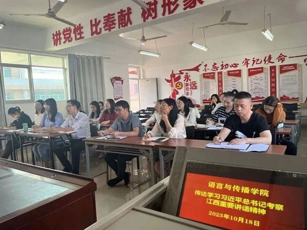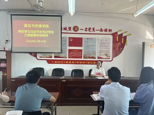 10月18日,信誉最好的十大体育平台传达学习习近平总书记考察江西重要讲话精神,党总支书记谢丽丽主持会议并讲话。