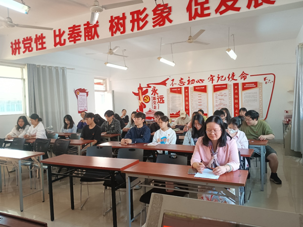 首先,谢丽丽书记总结了近期学习贯彻习近平新时代中国特色社会主义思想主题教育开展情况,领学了《习近平新时代中国特色社会主义思想主题教育专题摘编》第六章实施科教兴国战略,强化现代化建设人才支撑,重申了开展主题教育的重要意义,并现场抽查了与会党员主题教育应知应会的掌握情况。
