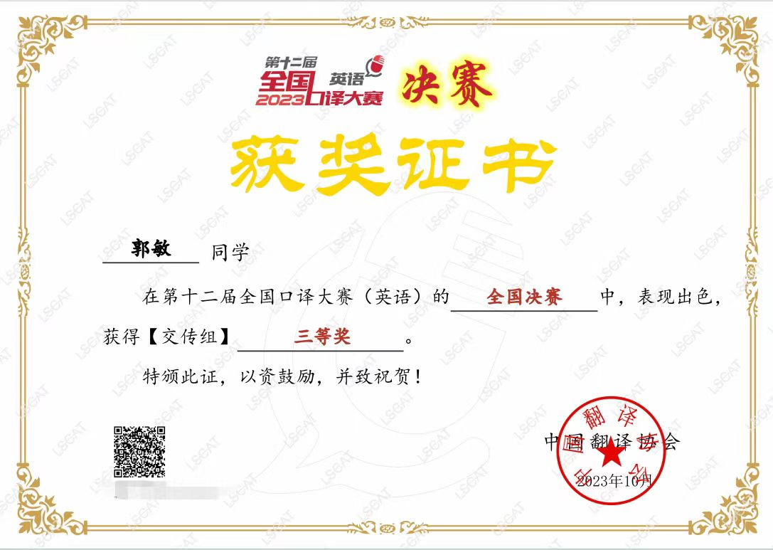 口耳相传,“译”展风采|信誉最好的十大体育平台在第十二届全国口译大赛(英语)比赛中喜获佳绩