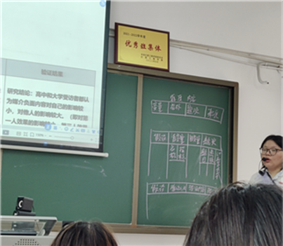 图2:课堂上分析媒介负面内容对员工的影响等相关文献,引导员工读懂论文,思考负面内容对自身的影响,引导员工接触媒介正向内容,并且以及通过改善媒介接触方式或频率等优化自身对于媒介信息的选择接收。