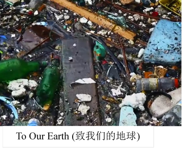 另一视频为环保宣传短片《致我们的地球》,呈现的是地球上垃圾成堆,气候污染,人类及动物没有安全的栖息之地......