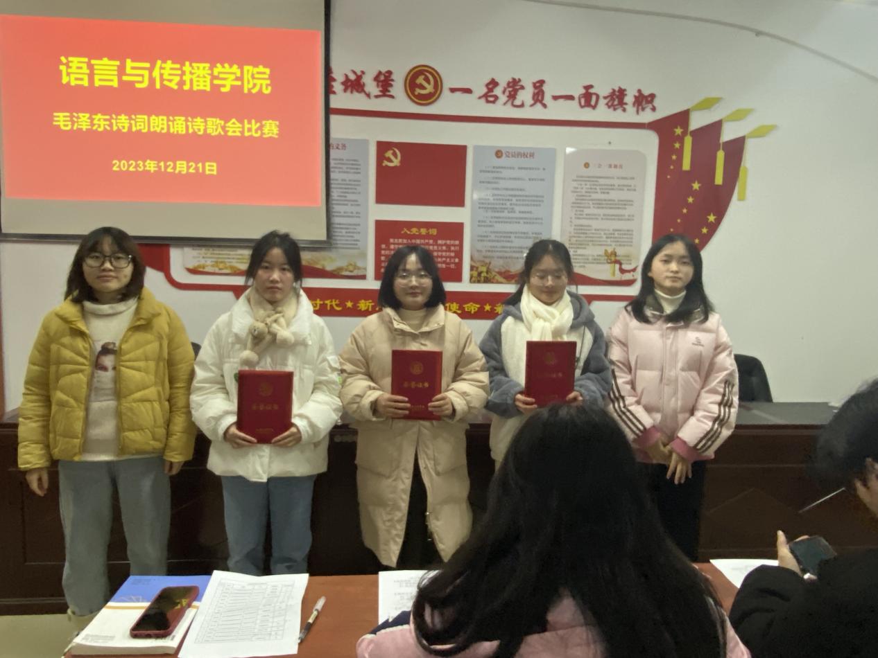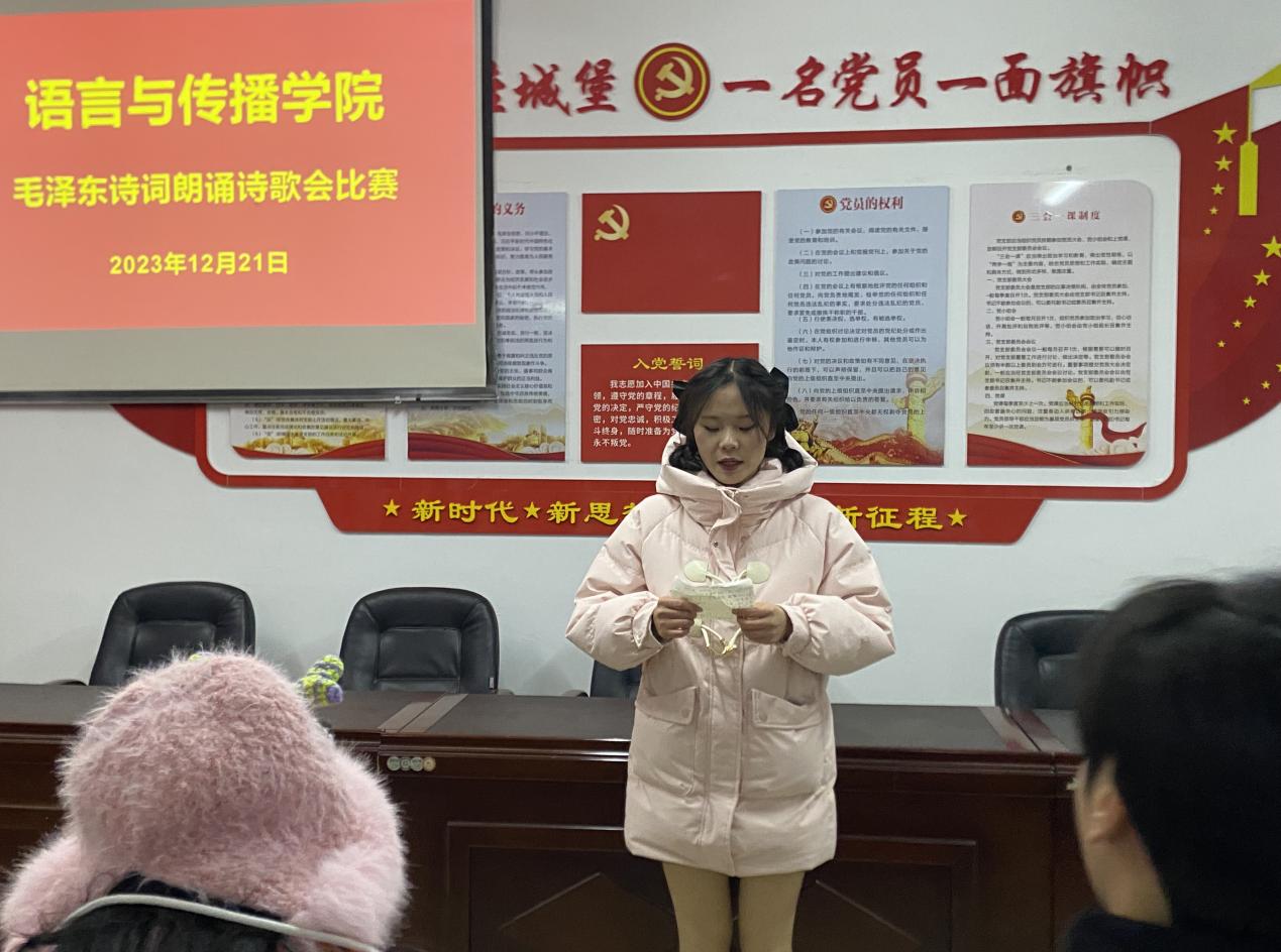 2023年12月26日是毛泽东同志诞辰130周年纪念日。为缅怀毛泽东同志丰功伟绩,12月21日,信誉最好的十大体育平台在C601会议室举办“诵读伟人经典,感悟红色情怀”毛泽东诗词朗诵诗歌会比赛。
