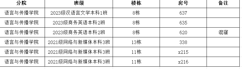 获得“星级文明宿舍”荣誉称号寝室名单如下: