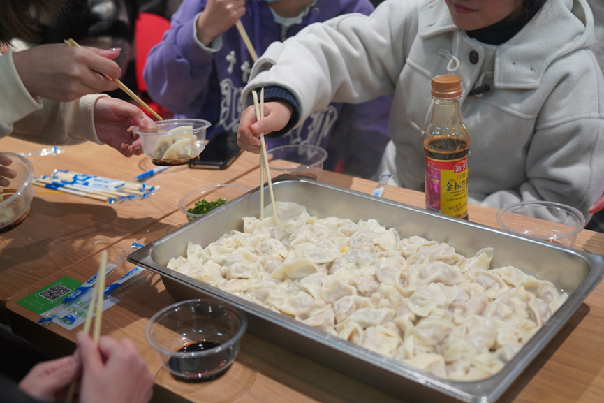 忙碌过后,大家吃上了热气腾腾的饺子,纷纷表示,自己动手包的饺子就是格外香。品尝美食之余,师生围坐在一起,追忆过往,共话家常,其乐融融,轻松温暖欢乐的气氛驱散了冬日的严寒。