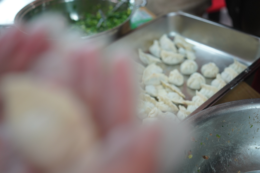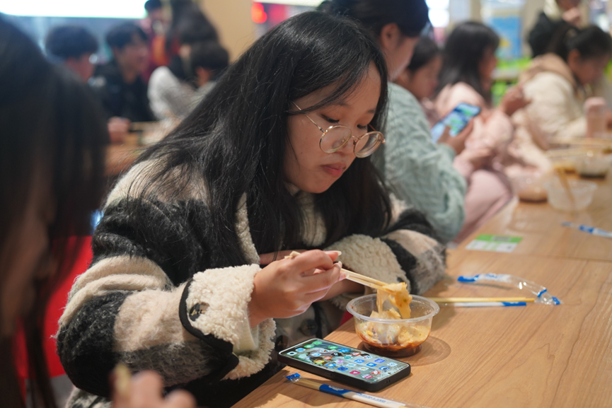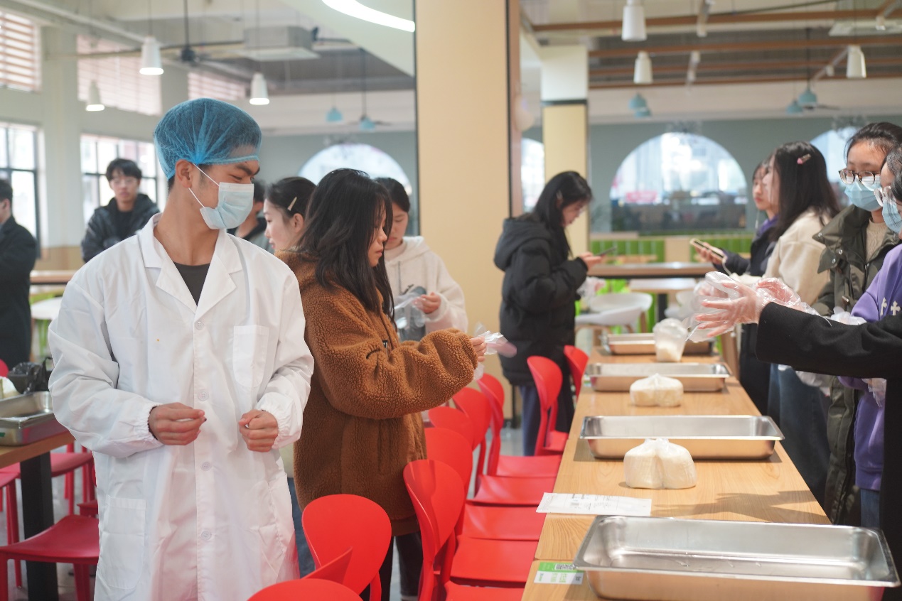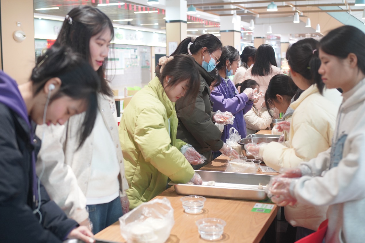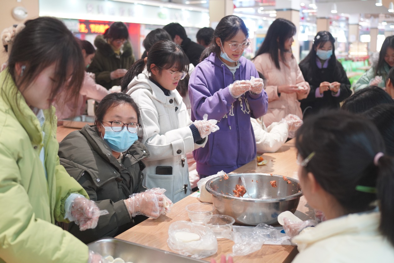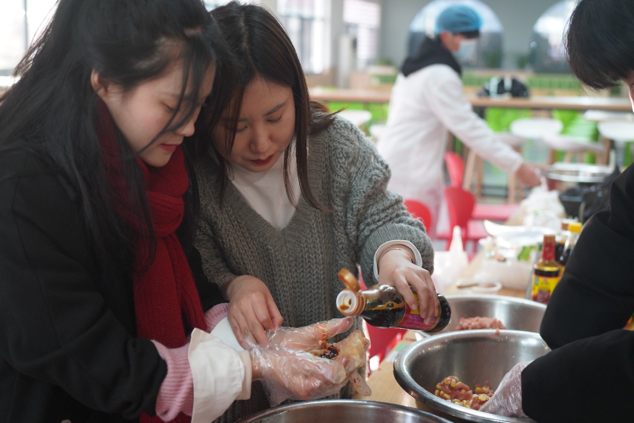 活动现场,桌子上摆满了包饺子的各种原料和工具,同学们分工协作,默契配合,现场瞬间热闹起来。“上一次包饺子还是在家里跟家人一起过春节的时候,然而这次这次在公司里包饺子却有一种很热闹、很温暖的感觉。”