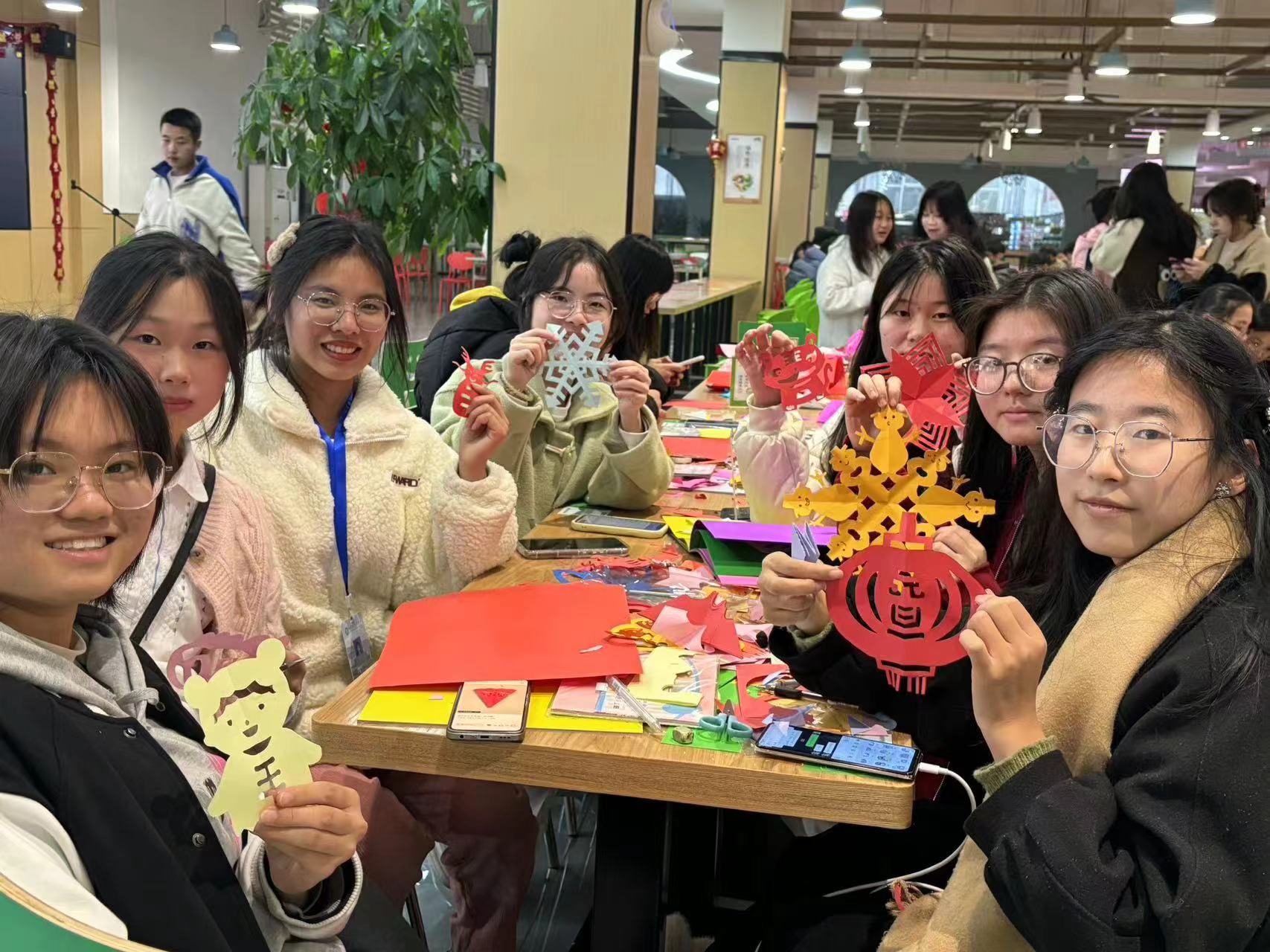 年关将至,龙年即将到来,剪纸艺术作为中国非物质文化遗产的一部分,承载着丰富的民族历史、文化信息、独特艺术的魅力。大家围坐桌边,一边热烈讨论着剪纸的技巧,一边亲手实践。