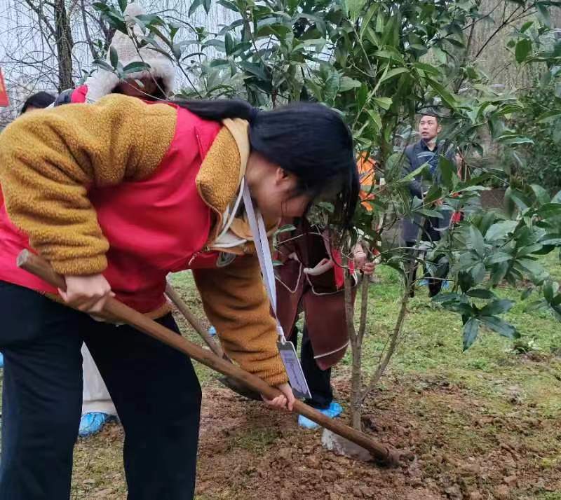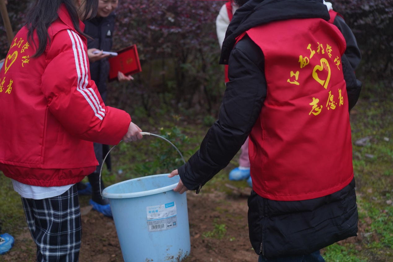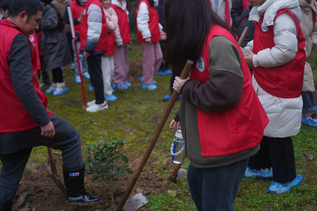 在植树现场,一派繁忙有序、热火朝天的景象。志愿者们有序地领取植树工具和树苗,并到指定地点植树。随着一颗颗小树苗栽入土壤里,象征希望和青春的幼苗开始在这个温暖的春天里生根发芽。种一棵树最好的时间是十年前,其次是现在。青年如勃发的嫩芽,拥有向下扎根的力量,方得向上生长的繁华。