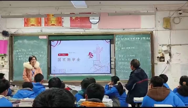 寒假伊始,我选择回到自己原先就读的高中进行宣传。我提前和自己原先的班主任沟通,在取得了她的同意后,我来到指定的班级进行宣讲。学弟学妹都很高兴的欢迎了我,并且很认真的听我讲解。而我的PPT主要介绍了国家的四个资助政策——国家奖学金,国家励志奖学金,国家助学金和国家助学贷款。