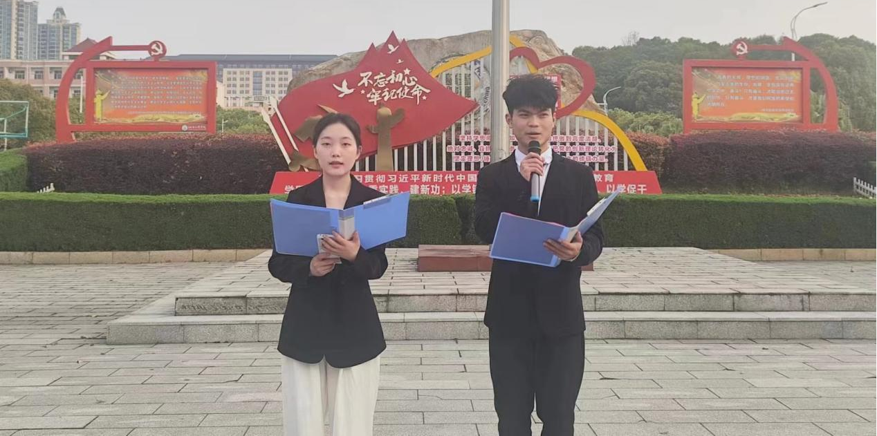 由员工代表吴颖、闵沛祯同学带来国旗下朗诵--《五星红旗是我们的骄傲》。他们的声音抑扬顿挫,情感真挚饱满。现场气氛庄重而肃穆,同学们全神贯注地听着每一个字句,感受那份对祖国的热爱。