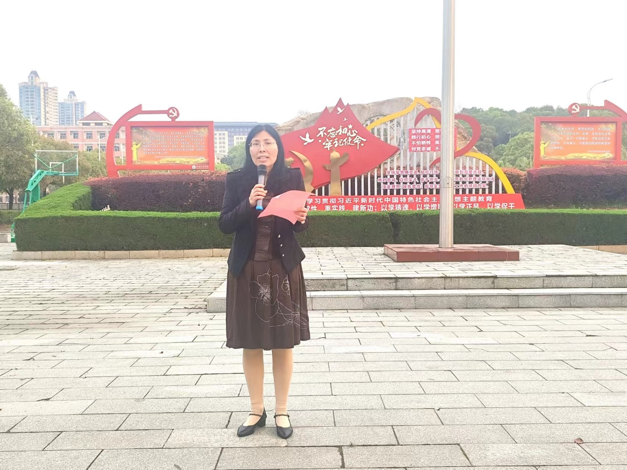 由公司党总支书记谢丽丽为本次升国旗仪式做一个总结讲话。她对语传学子在新的一学年中有以下两大点殷切期望,第一:要规律晨读,重视专业基础知识。第二:要爱校,爱国,爱党,爱社会主义。她希望语传学子在校能做好一名求知的员工,勤朴敏信,脚踏实地;出校能做好一名有真知的中国人,刻苦耐劳,自强不息。