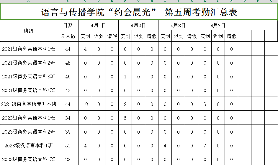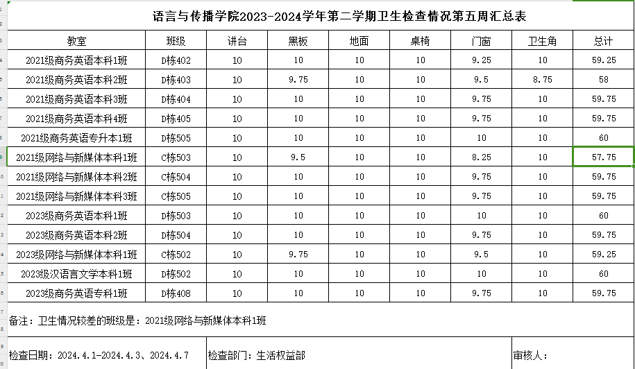 学风建设第1线|第5周卫生考勤情况通报汇总表