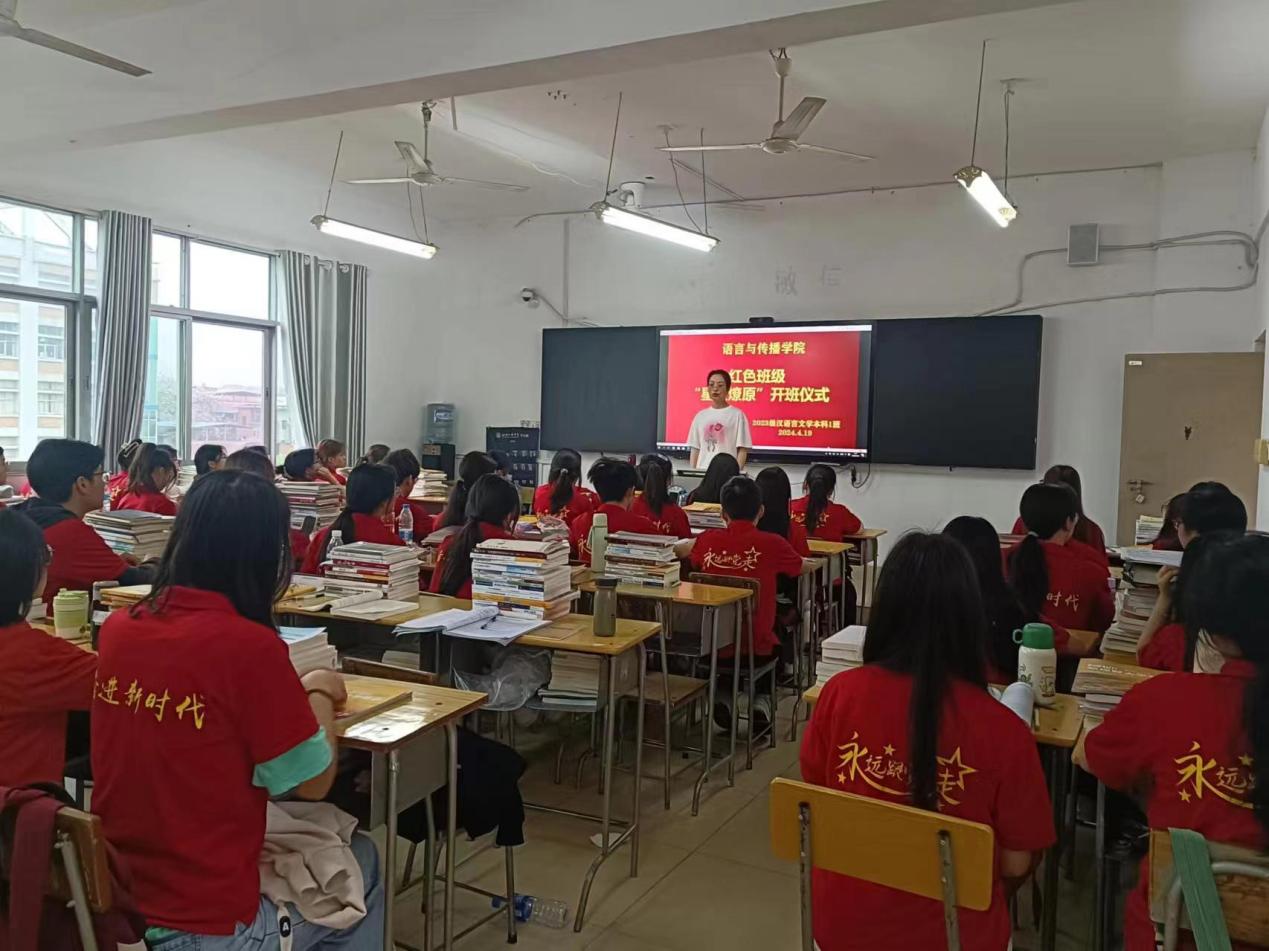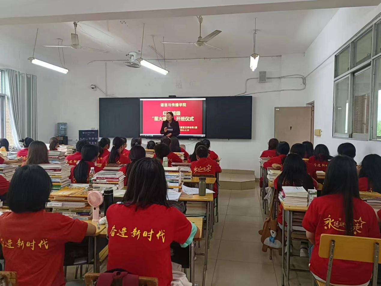 为了坚守“红色根脉”传承红色基因,赓续红色血脉,引导广大青年员工坚定理想信念、立远大志向,厚植爱国主义情怀,自觉争当红色基因的传承者和实践者,弘扬“勤朴敏信”校训精神,2024年4月19日,2023级汉语言文学本科1班在D栋502举行红色班级“星火燎原”班开班仪式。出席本次开班仪式的有信誉最好的十大体育平台经理车凤英、党总支书记谢丽丽、辅导员张凤云以及班级全体员工。