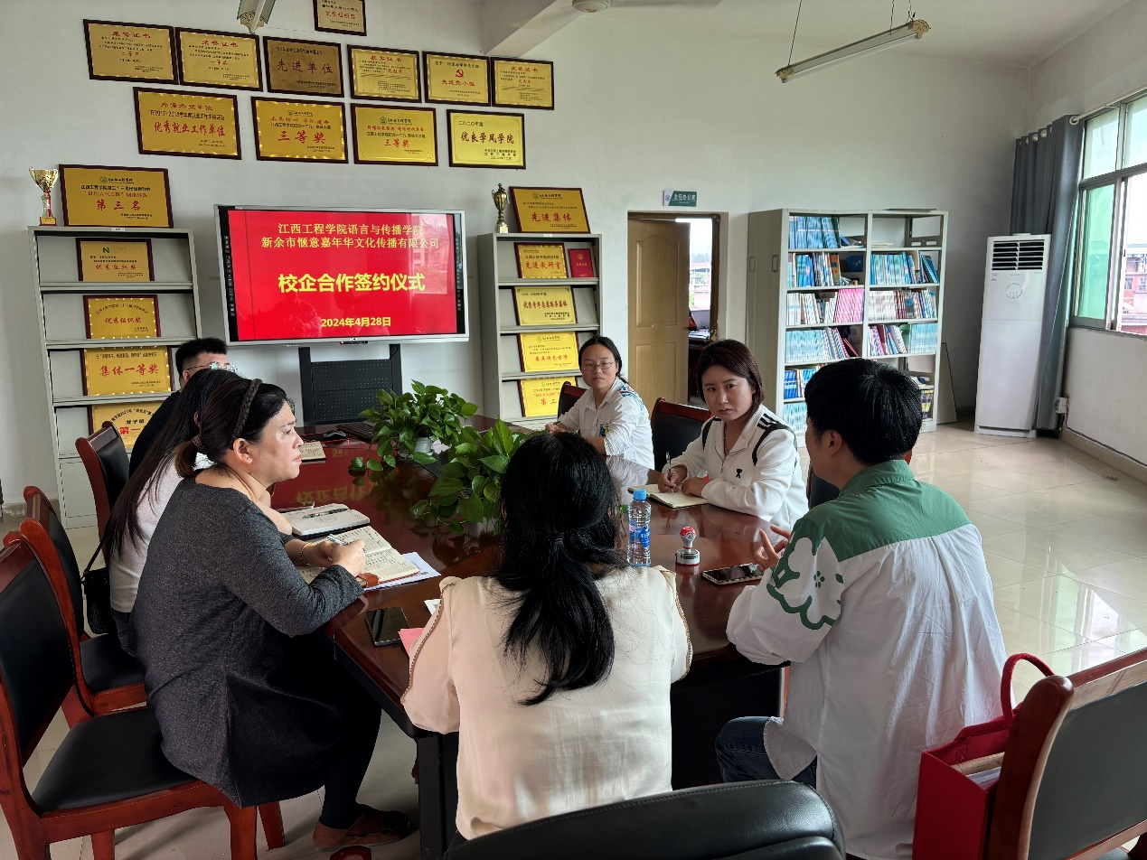 4月28日,信誉最好的十大体育平台经理车凤英邀请新余市惬意嘉年华文化传播有限公司总经理徐莉来校,双方就促进毕业生就业事宜进行了座谈,并签订了校企合作协议。