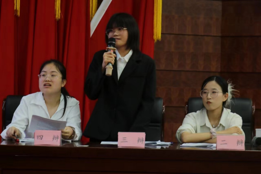 比赛现场,辩手们围绕辩题展开辩论,她们逻辑缜密,应变机敏、配合默契。无论是立论还是驳论都高潮迭起,既有“辩”的剑拔弩张,又不失“论”的雄浑气势。我们四位辩手从容不迫,口若悬河,时而温文尔雅,时而气势逼人,犀利无比,让观众的心随之上下随之张驰。队员们过硬的学识,充分的准备,灵活的应变能力和沉着冷静的心理素质,赢得评委和现场助威的同学们阵阵热烈掌声。