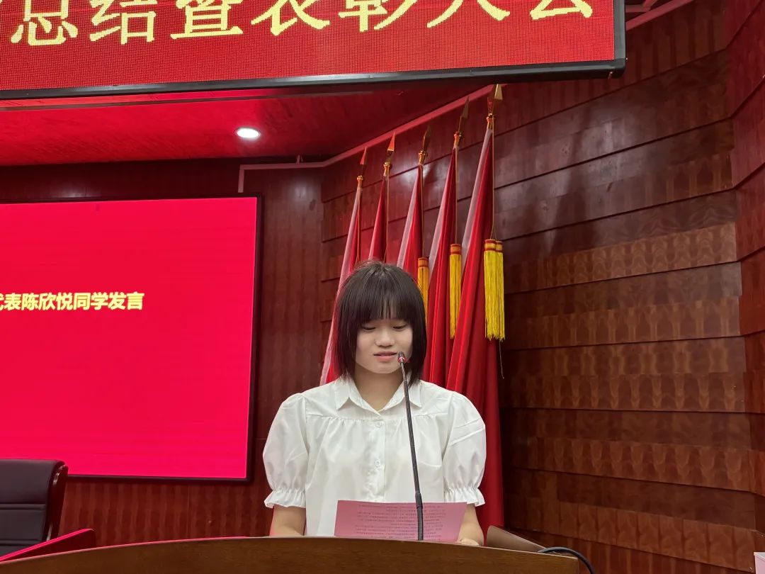 公司优秀员工陈欣悦,作为员工代表发言。她表示作为班级心理委员,深知自己肩负着重要的责任,学会关注同学们的心理健康,为班级营造一个积极、健康、温暖的心理环境。