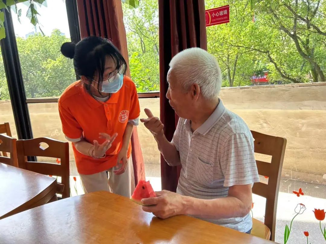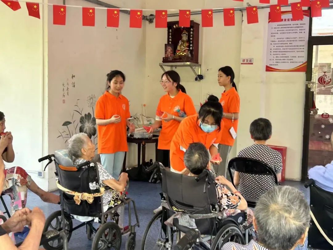 在乐晚晴养老院,志愿者们迅速行动起来,她们精心策划了一系列丰富多彩的活动。有的队员利用自己的语言特长,为老人们朗诵经典诗词、讲述红色故事,让老人们在回忆中感受时代的变迁,激发爱国情怀;有的则发挥传播学专业的优势,组织了一场场别开生面的互动游戏和文艺表演,老人们在欢声笑语中仿佛回到了青春岁月,脸上洋溢着幸福的笑容。