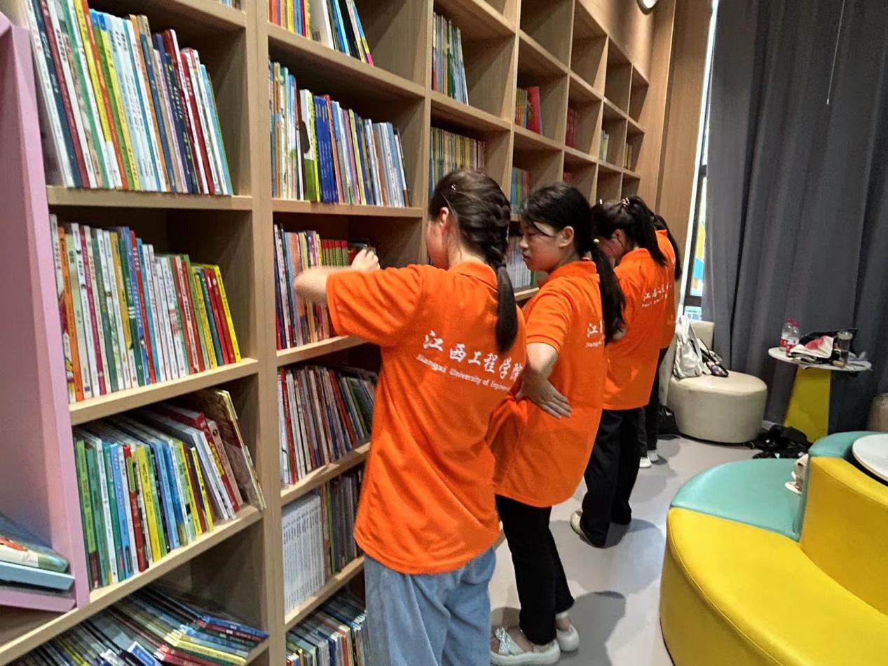 7月7日,实践队成员们便化身为“图书守护者”,投入到紧张而有序的图书整理工作中。她们细心地将一本本散落的书籍归位,确保每本书都能找到属于它的“家”。在大家的共同努力下,抱石书房变得更加整洁、有序,书香气息愈发浓厚。这不仅是对知识的尊重,更是对文明阅读环境的守护。除了整理图书,实践队成员们还主动承担起维持书房秩序的任务。她们耐心引导读者遵守规则,保持安静,共同营造一个良好的阅读氛围。在他们的努力下,抱石书房成为了一个让人安心阅读、享受知识的静谧空间。夏日炎炎,防溺水安全教育也不容忽视。实践队成员们特别准备了防溺水安全视频,为小朋友们上了一堂生动的安全教育课。他们通过视频中的真实案例和详细讲解,让孩子们深刻认识到溺水的危害及预防措施。