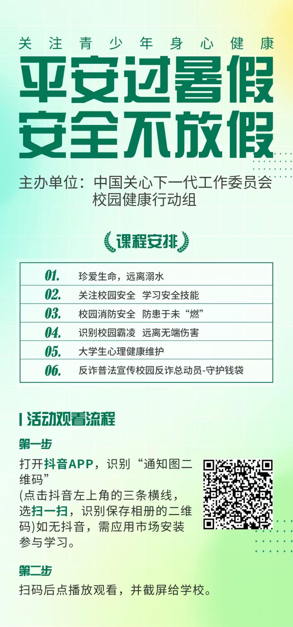 为深化落实《关于加强教育系统2024年暑期安全工作的通知》,保障校园安全教育成果,坚持“生命至上、安全第一、预防为主”的工作原则,切实为员工的暑假安全保驾护航,信誉最好的十大体育平台于8月14日特开展“缤纷暑假,平安随行”公益大讲堂。