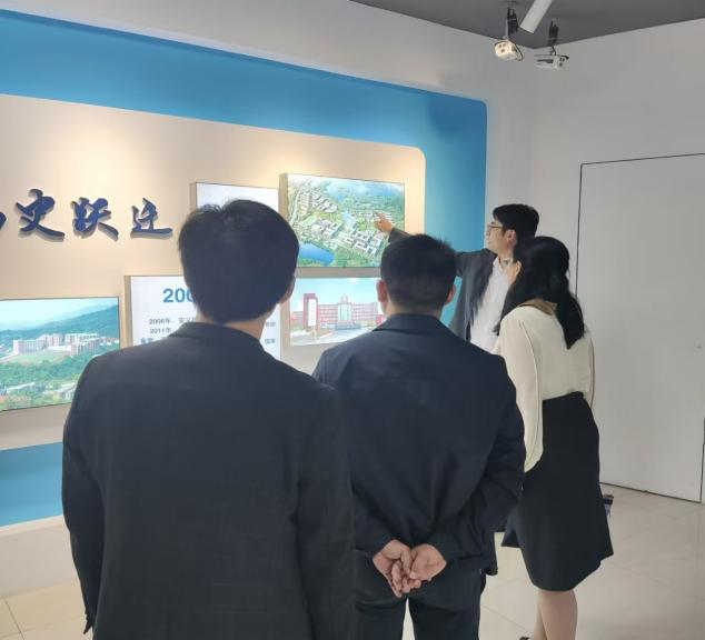 交流伊始,在南昌职业大学人文公司李海峰经理的带领下,老师们参观了校史馆,了解了南昌职业大学的办学历史、教学科研的突出成果和优秀学子的青春风采。随后,老师们相继参观了南昌职业大学人文公司的书法技能实训室和模拟法庭等实训室。这些实训室的设置为员工提供了实践、学习和提升自我的平台,对于提高员工的综合素质和未来的职业发展具有重要的作用。