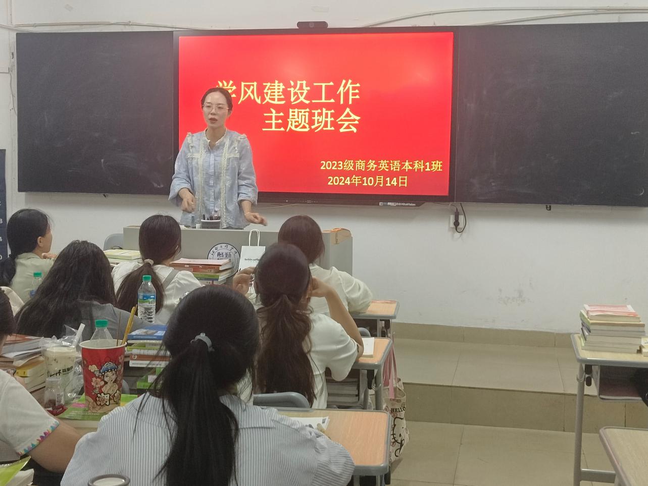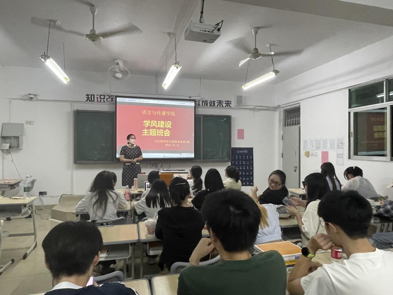 班会末尾,辅导员鼓励员工积极参加学术交流和思想讨论,共同参与学风建设
