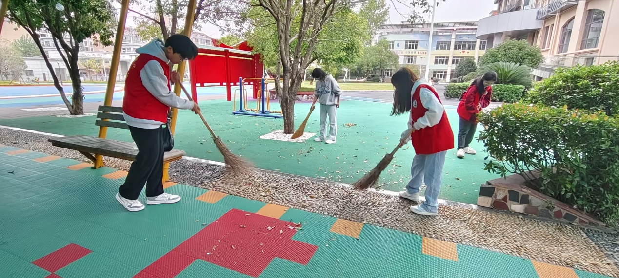 在了解完福利院和孩子们的基本情况后,志愿者们深受感触,主动提出打扫卫生。志愿者们一个两个拿着扫把认真打扫地面上的枯枝落叶,舞动的扫把仿佛成了一座桥梁,连接着志愿者们和福利院,也将关爱和友好传递到了这里。