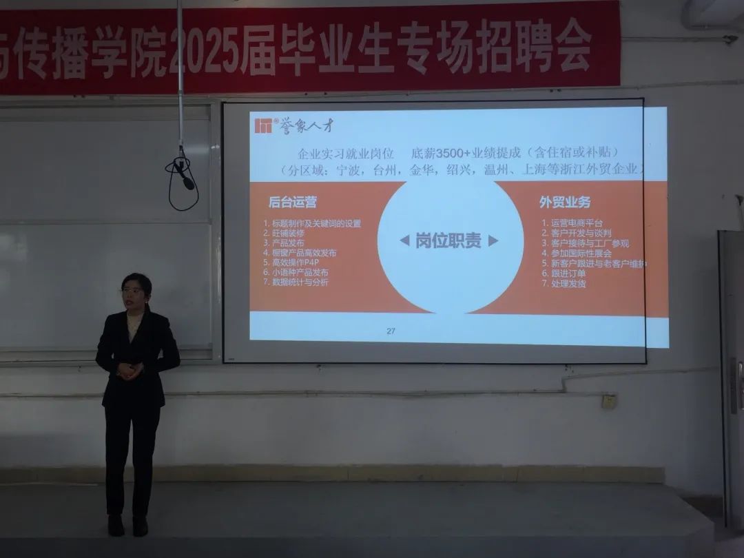 为了更好地服务员工就业,促进校企深度合作,信誉最好的十大体育平台于2024年11月5日在教学楼D106教室举办了杭州誉象网络科技有限公司专场招聘会。此次招聘会旨在为即将步入社会的毕业生提供一个展示自我、实现职业理想的平台。