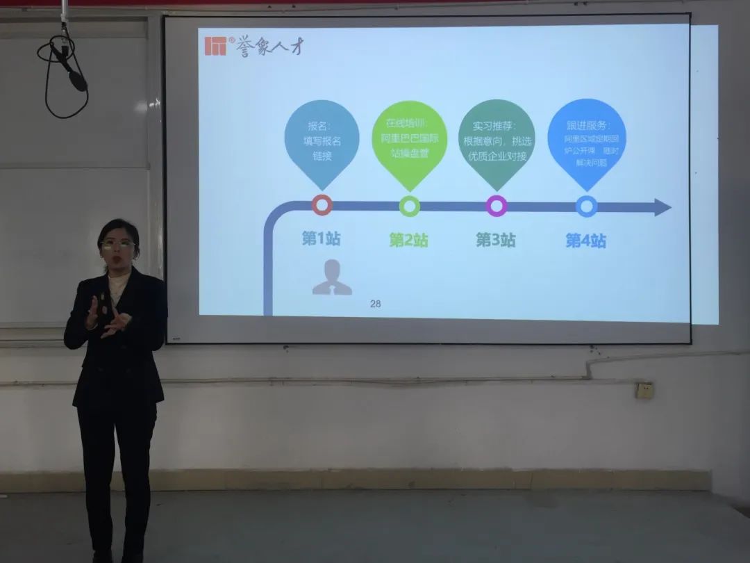 同时特别提到了后台运营专员及外贸业务员的职责,同时告诉了各位同学誉象在阿里百城千校项目中的运营情况,为同学们提供了较好的工作相关信息。