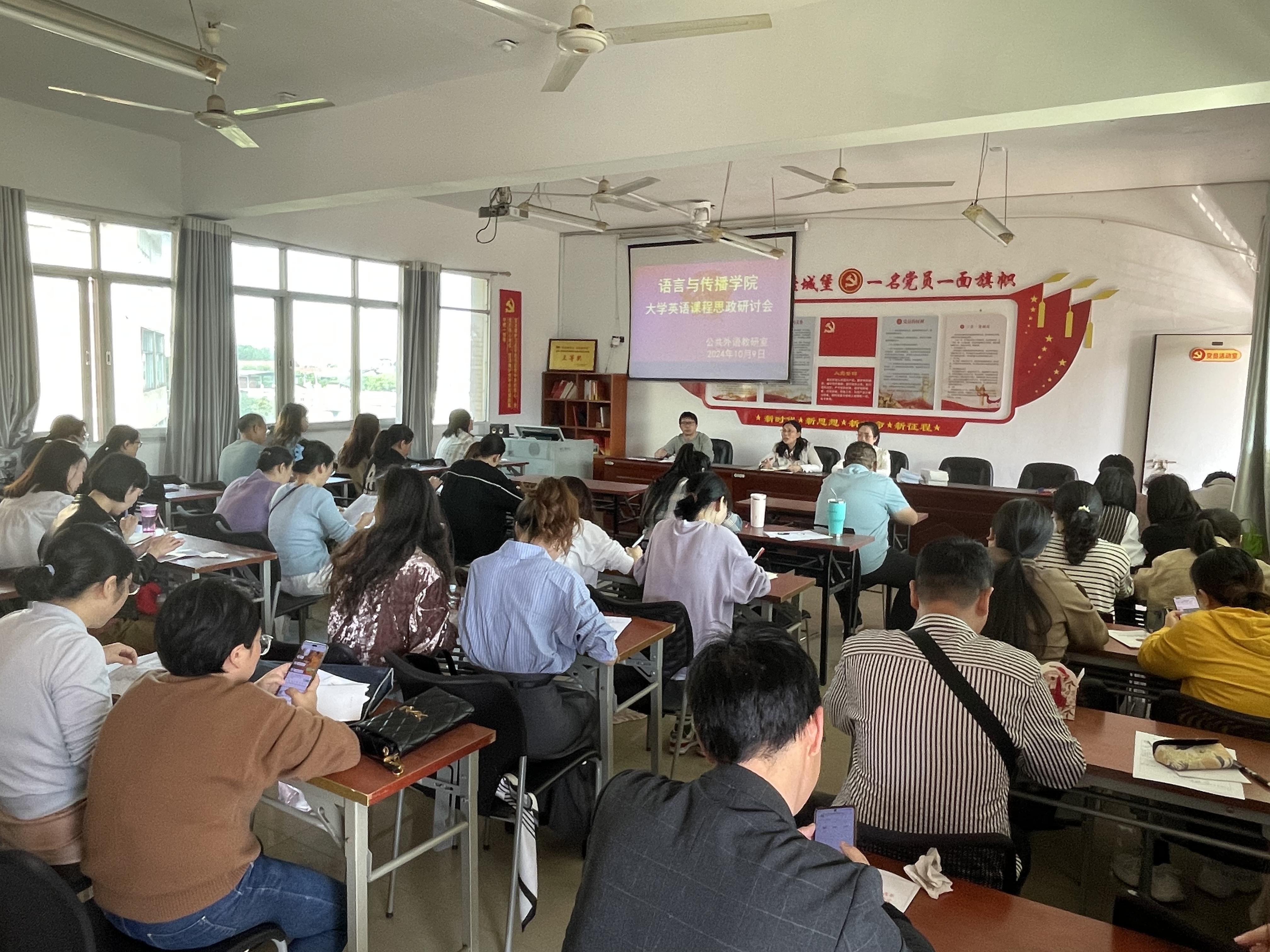 随后公共外语教研室的各位老师就如何有效地使思政元素融入课堂展开了经验交流,分享各自在平时授课过程中的经验所得,总结出思政融入切忌刻板生硬,思政元素应从日常积累、从生活中发现,立足课本,结合员工兴趣融会贯通,以达到润物无声的效果。