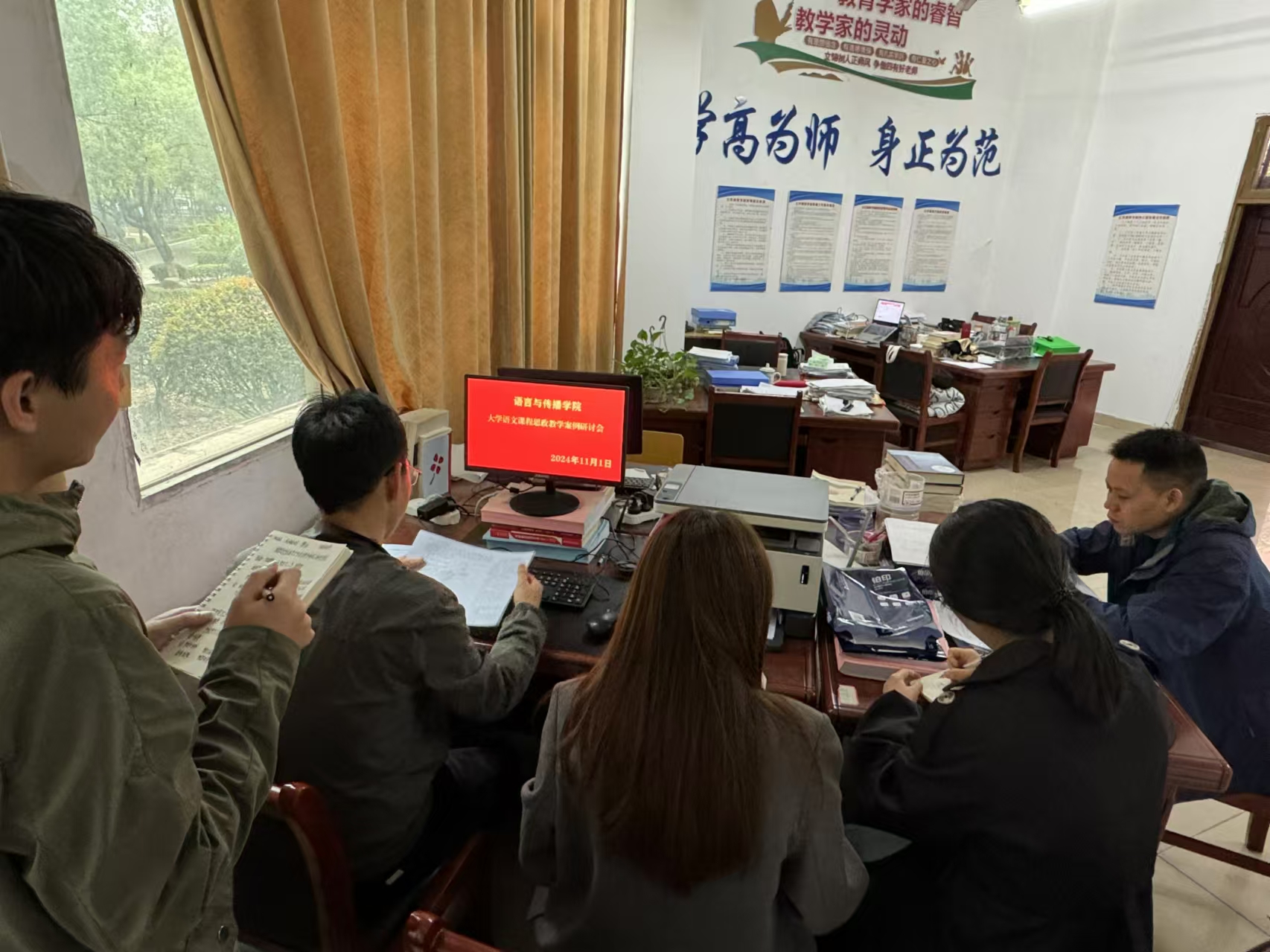 2024 年 11 月 1 日,一场以大学语文课程思政为主题的教研活动在C100成功举行。大学语文教研室全体成员参与此次活动,共同探讨如何在大学语文教学中深度融入思政元素,提升课程的思想政治教育功能。