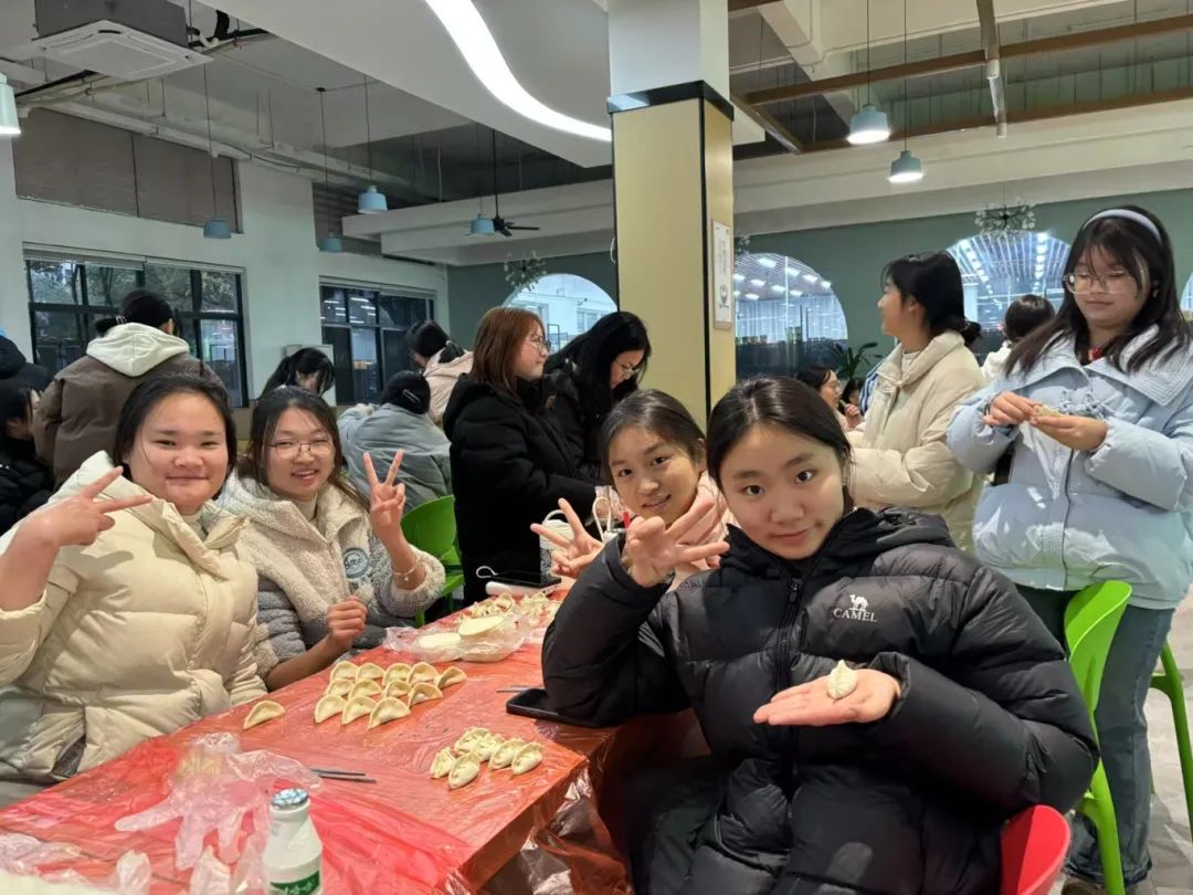 12月22日,冬至时节,为了弘扬中华传统文化、丰富校园文化生活、增强班级凝聚力,2024级商务英语本科1班联合23级商务英语本科2班在校园食堂举办了一场热闹非凡的包饺子活动。此次活动不仅让同学们在寒冷的冬日里感受到了家的温暖,还在欢声笑语中加深了彼此间的友谊。
